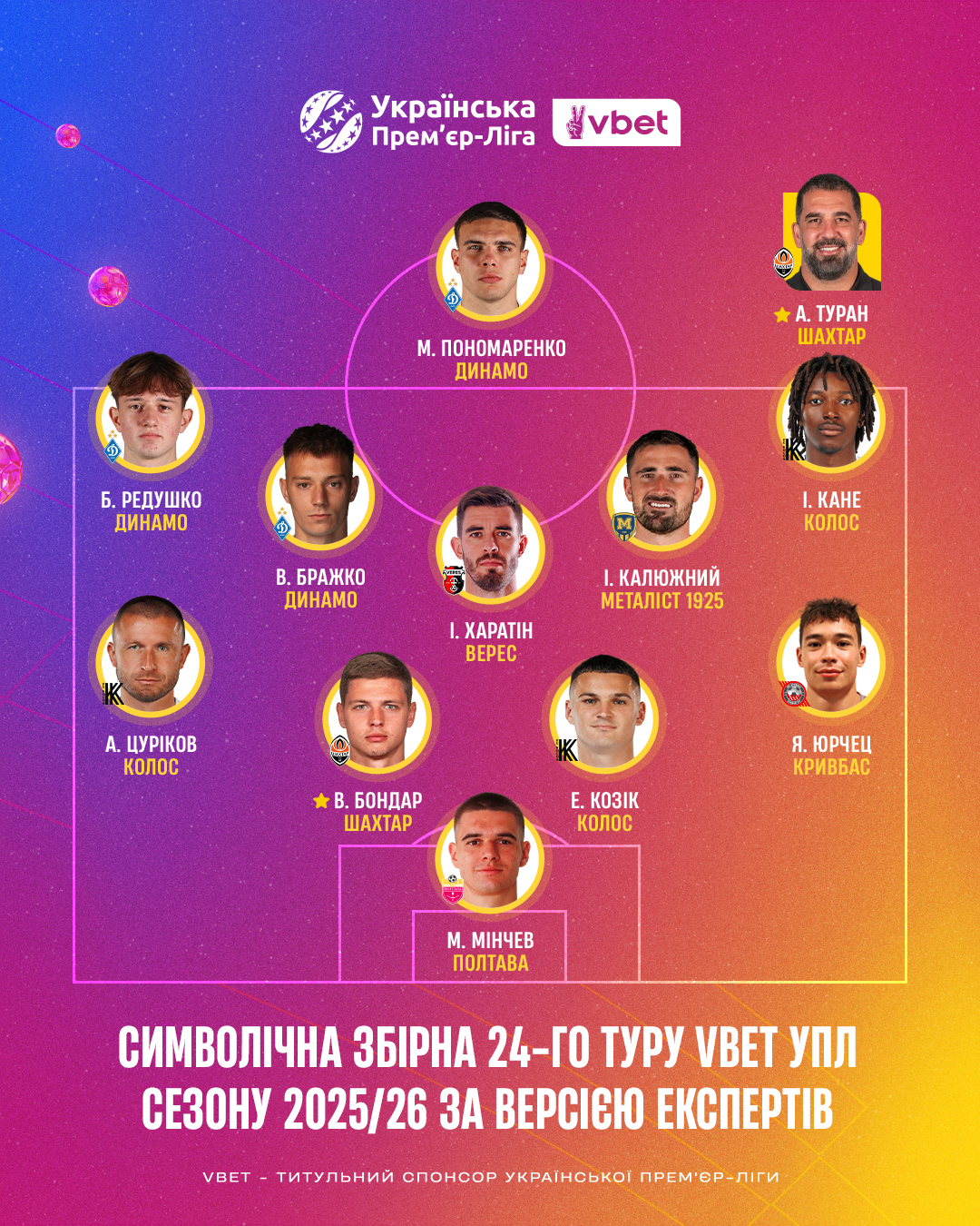 Українська Прем’єр-Ліга продовжує відзначати героїв сезону 2025/26 і склала символічну збірну 24-го туру Чемпіонату УПЛ, а також назвала найкращого футболіста та найкращого тренера 24-го туру. Традиційно це було зроблено разом з ведучими, експертами, коментаторами УПЛ.ТБ та представниками провідних спортивних ЗМІ України. Цього разу їх вийшло 41.