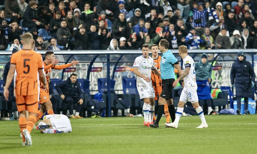 Гравці «Динамо» як вдома, так і в гостях однакову кількість разів вилучалися з поля — по 7 карток. Гравці ж «Шахтаря» в статусі гостей 5-й раз побачили перед собою червоні картки, а на своєму полі — 7.
