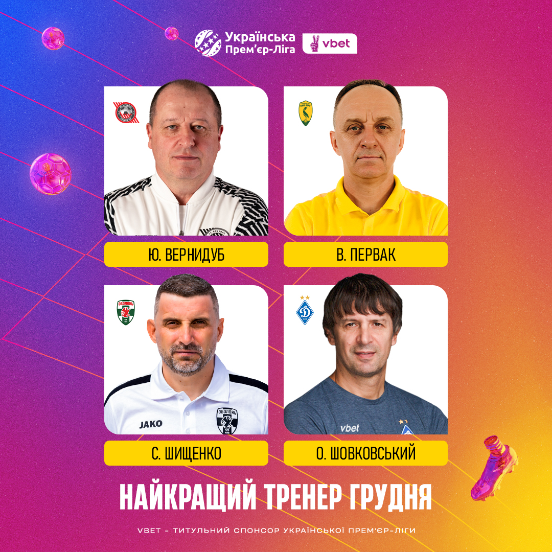 Українська Прем’єр-Ліга традиційно разом із титульним спонсором, компанією VBET Україна, проводить голосування для визначення найкращих тренера та гравця місяця в Чемпіонаті УПЛ.