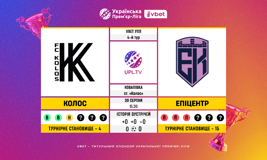 Матч 4-го туру VBET Української Прем’єр-Ліги «Колос» — Епіцентр»: статистичне прев’ю
