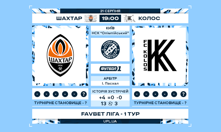Матч 1 туру Favbet Ліги «Шахтар» — «Колос»: статистичне прев’ю