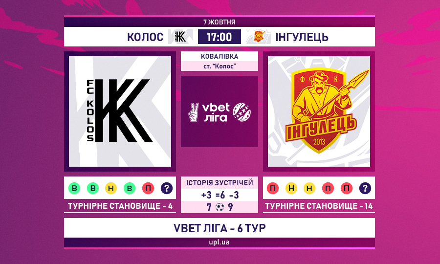 Матч 6-го туру VBET Ліги «Колос» — «Інгулець»: статистичне прев’ю